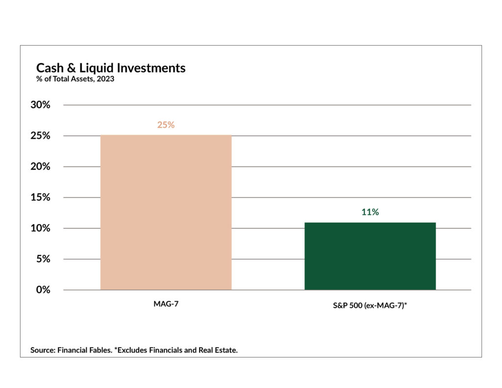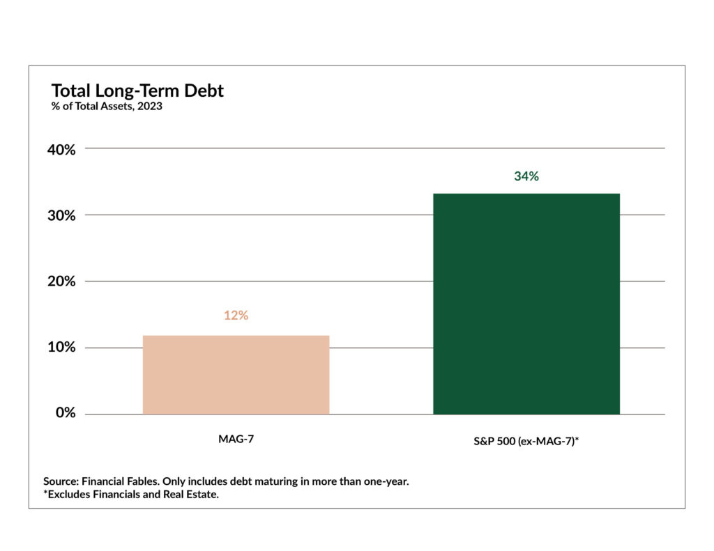 The Magnificent Seven also holds some of the healthiest balance sheets in the world, with most of their rapid investment in AI driven by cash on hand compared to previous debt-backed rallies.